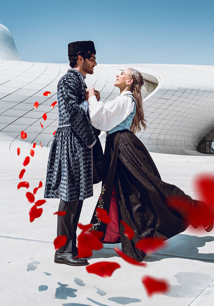 “Heyerdahl theorized that the ancestors of Scandinavians, including Norwegians like himself, likely originated from the region presently known as Azerbaijan.” Following in his footsteps, we sought to uncover the similarities between these two oil-rich nations and crafted a love story scenario where two individuals from different cultures meet in a narrative adorned with traditional costumes from Norway and Azerbaijan.