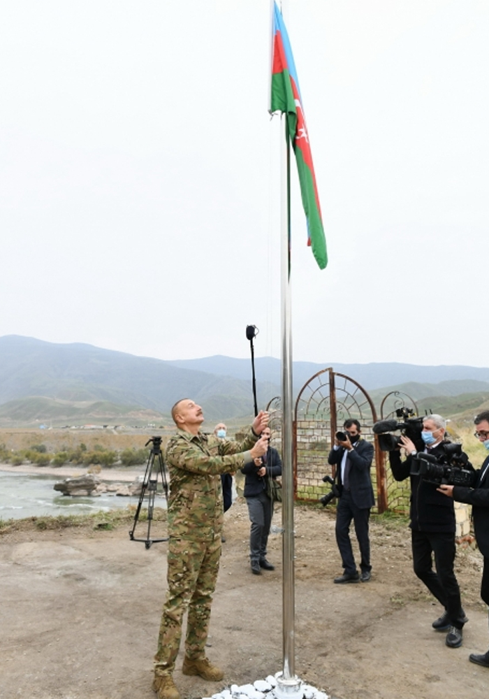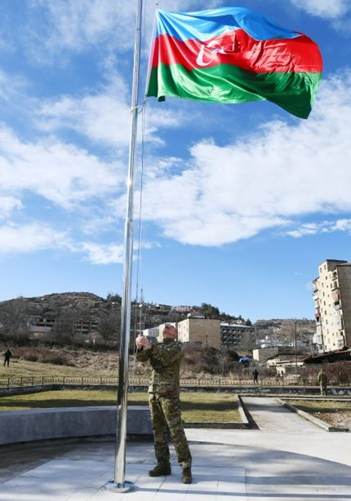 Azerbaijani flag waves in recently liberated Cultural capital of Azerbaijan, Shusha city