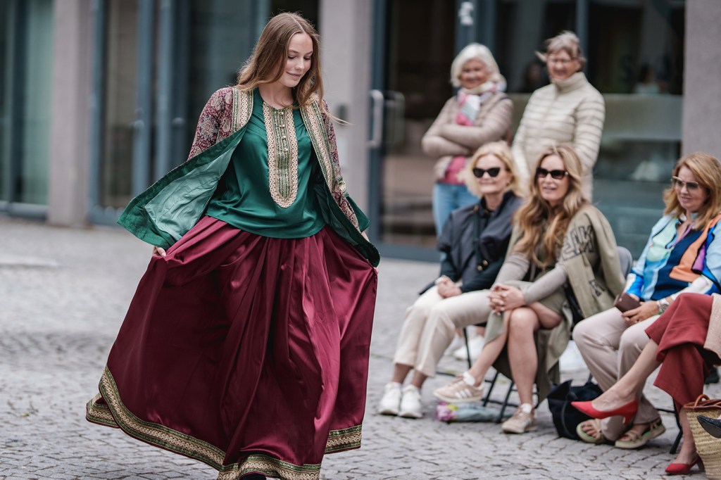 Gulzade Abdulova presented a special collection of Authentic Azerbaijani National Costumes from the regions of Karabakh, Irevan Khanate, Tebriz, Urmu, Ardabil, Sheki, Zaqatala and Baku. Each costume reflected the deep roots, symbolism, and regional identity of Azerbaijan’s rich textile heritage. Worn by local girls from Stavern and introduced by renowned journalist Nigar Ibrahimova, the collection brought cultural history to life in a beautiful, cross-cultural setting.