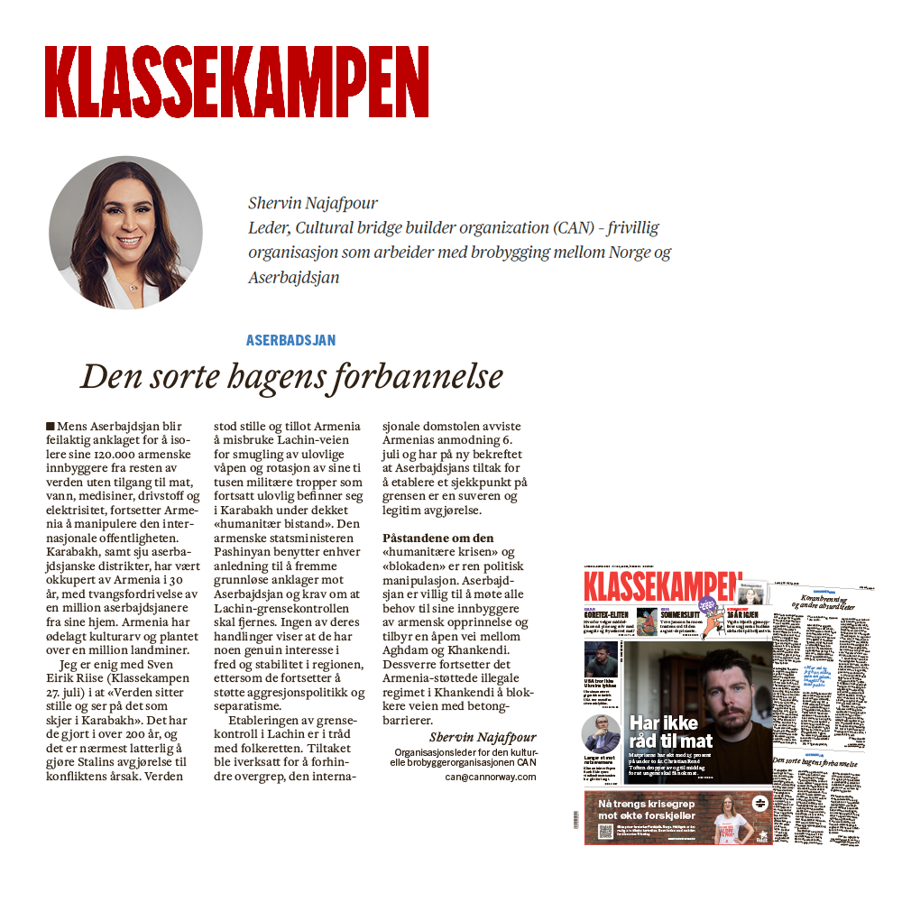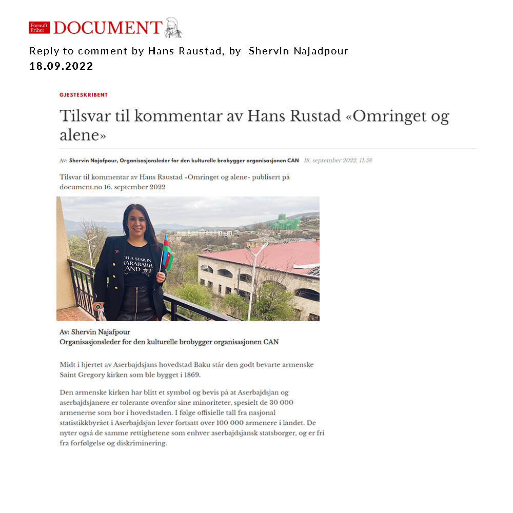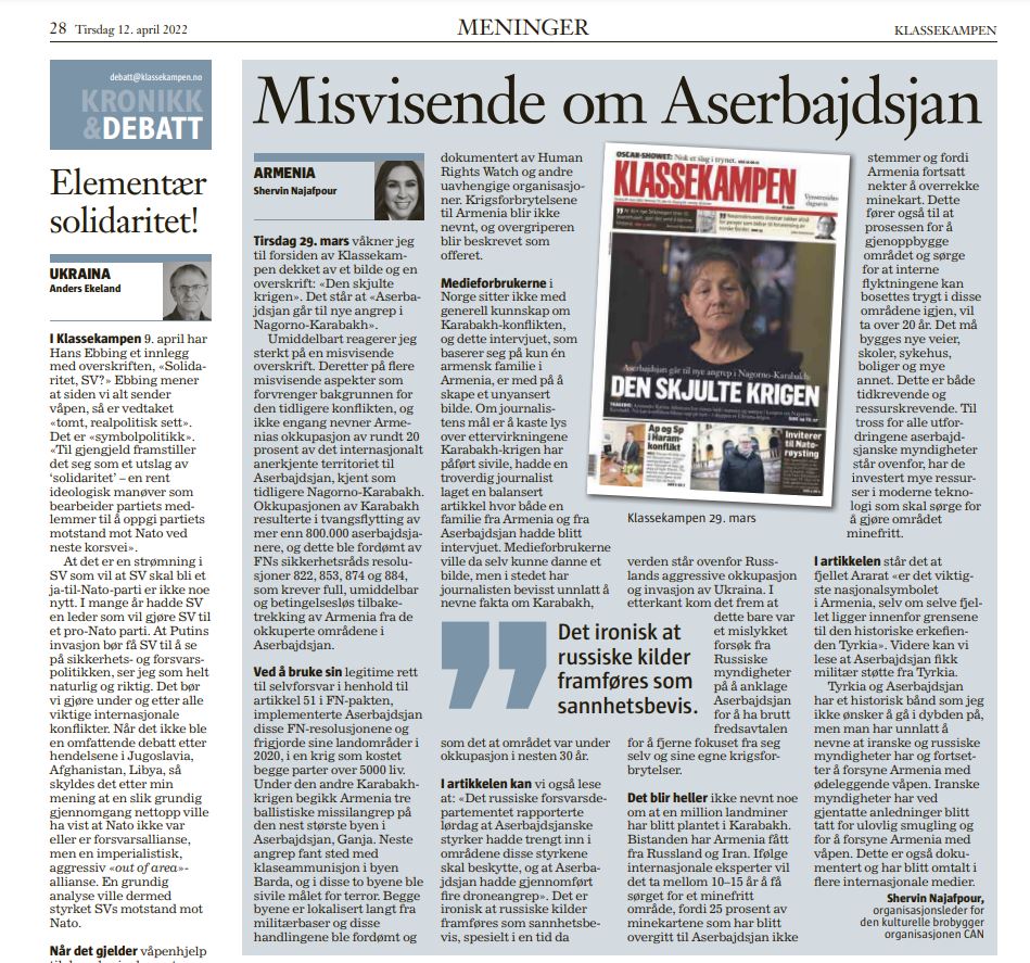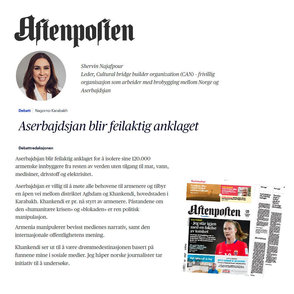 Under Karabakh krigen i år, opplevde vi spesielt at norske medier farget konflikten svart på hvitt og anerkjente heller ikke sivile tap i Aserbajdsjan og grove brudd på internasjonal rett. Det unyanserte mediebildet, samt medias uansvarligheter har sørget for stor frykt blant norsk-aserbajdsjanere i Norge som nå befinner seg i en veldig vanskelig situasjon.