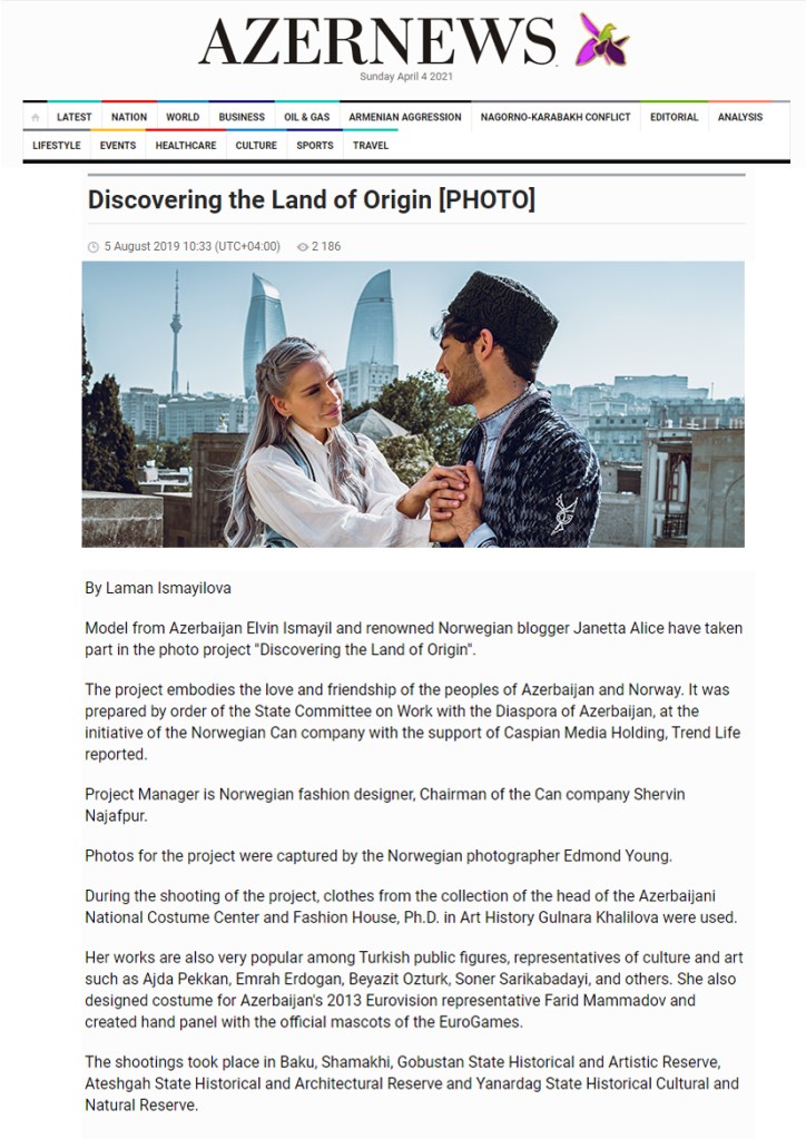 Model from Azerbaijan Elvin Ismayil and renowned Norwegian blogger Janetta Alice have taken part in the photo project “Discovering the Land of Origin”.