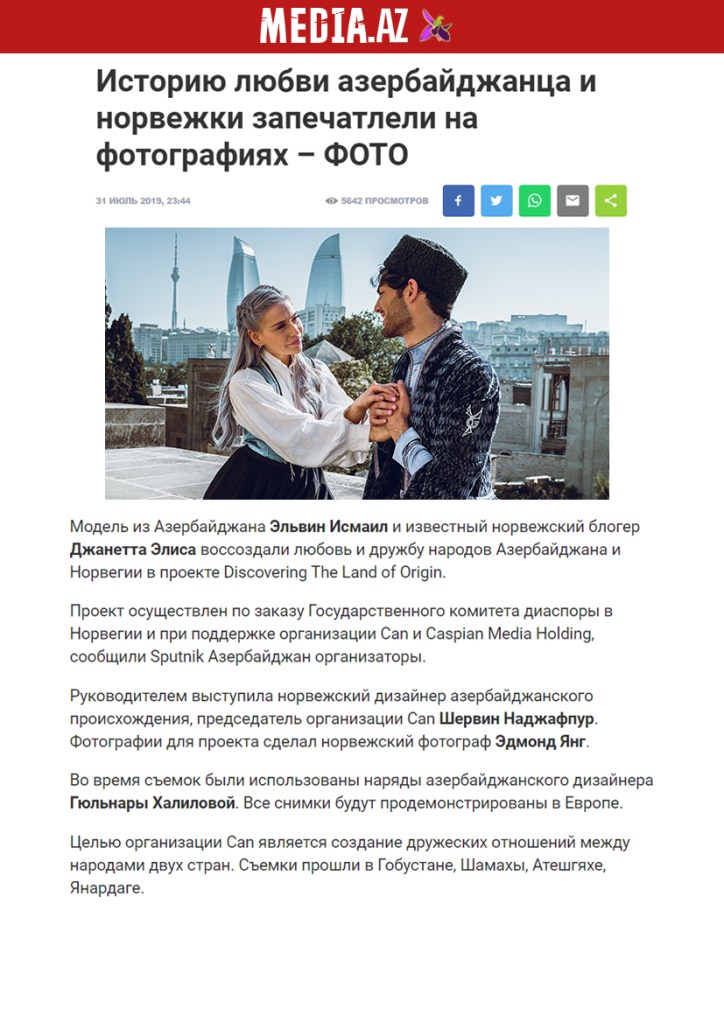 Модель из Азербайджана Эльвин Исмаил и известный норвежский блогер Джанетта Элиса воссоздали любовь и дружбу народов Азербайджана и Норвегии в проекте Discovering The Land of Origin.