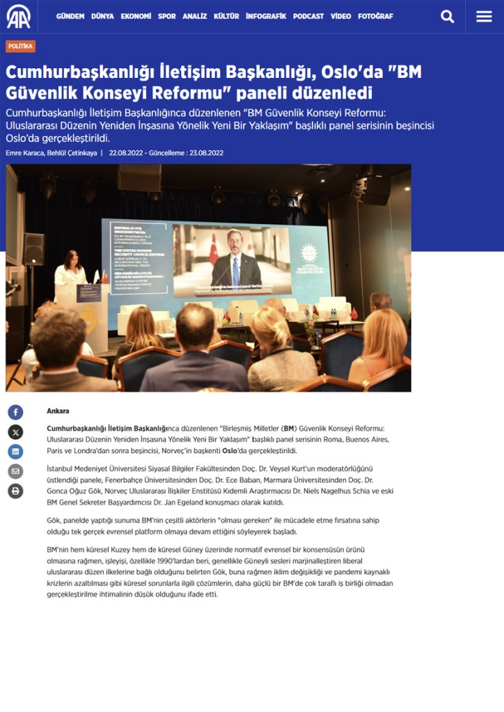 Cumhurbaşkanlığı İletişim Başkanlığı, Oslo’da “BM Güvenlik Konseyi Reformu” paneli düzenledi